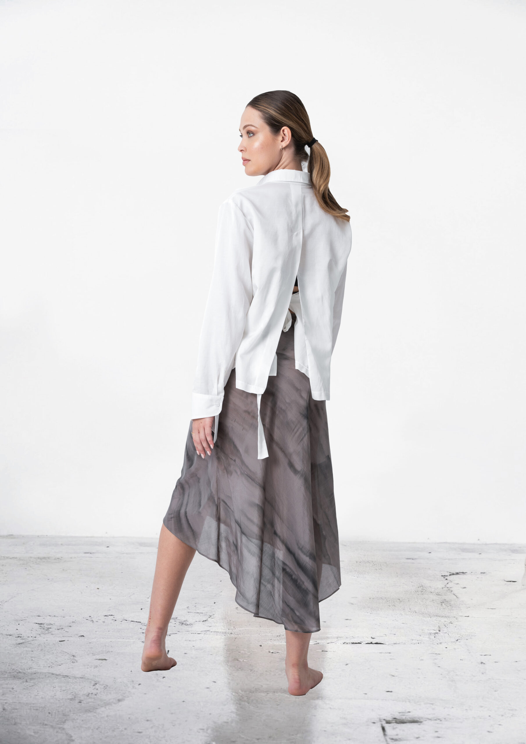 Made from premium cotton, this shirt ensures comfort and breathability. The unique back design adds a contemporary edge to a classic silhouette, making it a must-have for fashion-forward individuals, ensuring you stand out.
